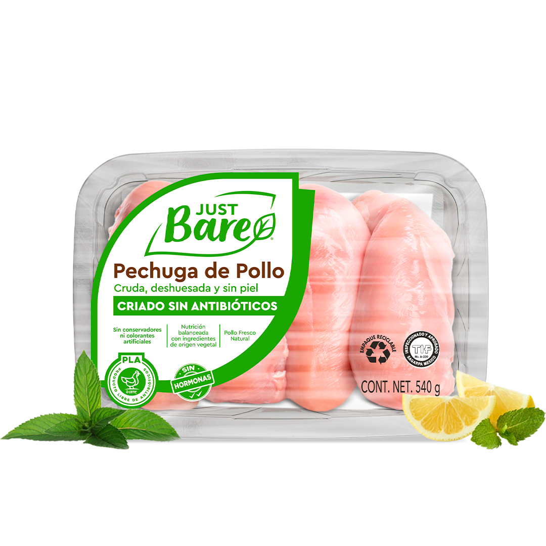 Proveniente de aves con alimentación vegana y libres de antibióticos.